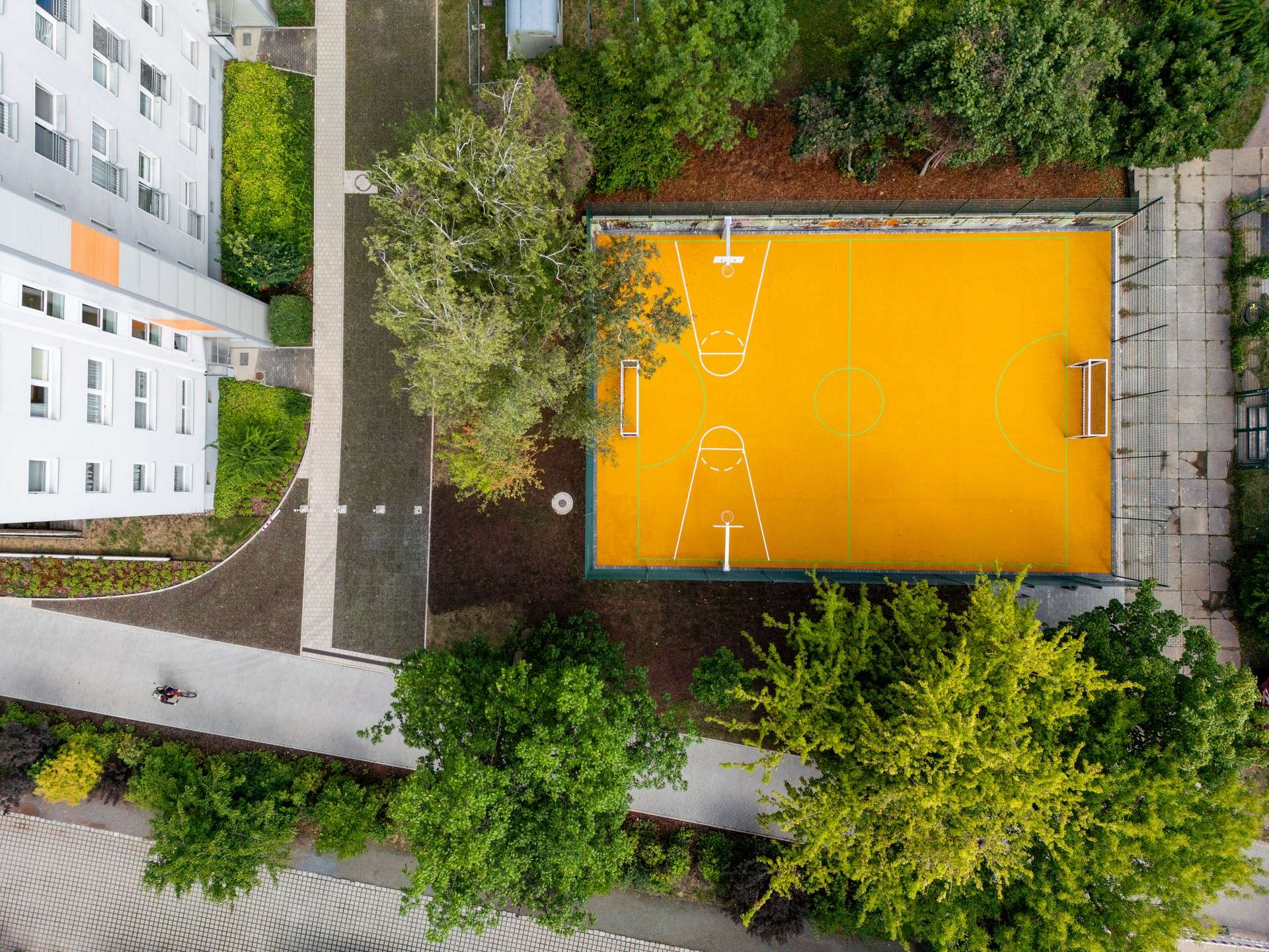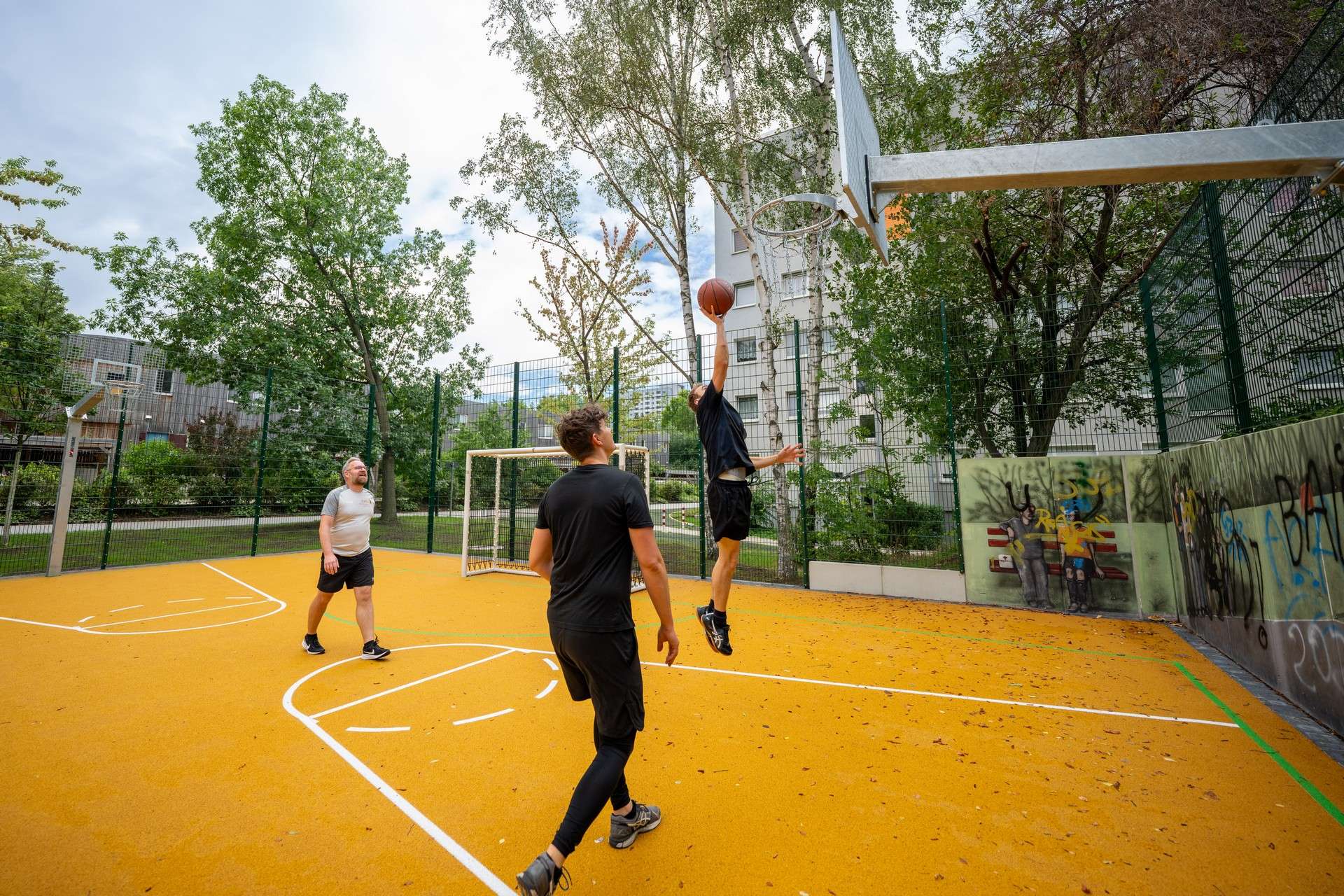 Dieser ist nach der Modernisierung attraktiver, sicherer und vielseitig nutzbar. Nun ist der Bolzplatz wieder ein beliebter Treffpunkt für Familien, Kinder und Jugendliche im Quartier. Viel Spaß beim Kicken, Bolzen, Dribbeln und Körbe werfen!